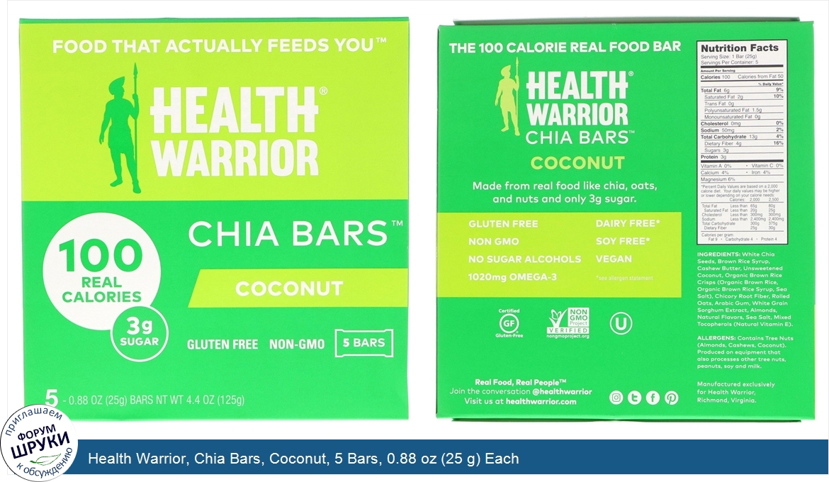 Друзья, если у вас есть отзыв/дополнение/комментарий/вопрос относительно Health Warrior, Chia Bars, Coconut, 5 Bars, 0.88 oz (25 g) Each - напишите его ответом в эту тему (это будет полезно всему сообществу в целом и вам в отдельности).