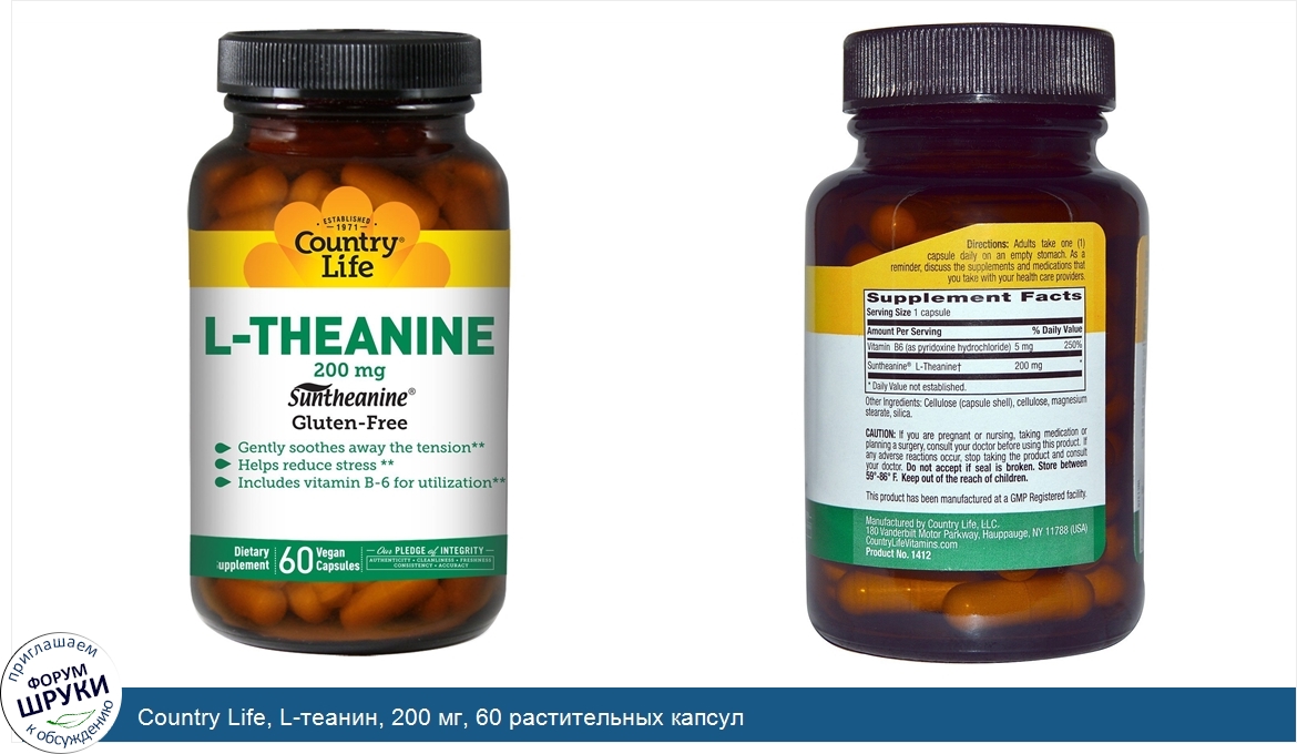 Друзья, если у вас есть отзыв/дополнение/комментарий/вопрос относительно Country Life, L-теанин, 200 мг, 60 растительных капсул - напишите его ответом в эту тему (это будет полезно всему сообществу в целом и вам в отдельности).