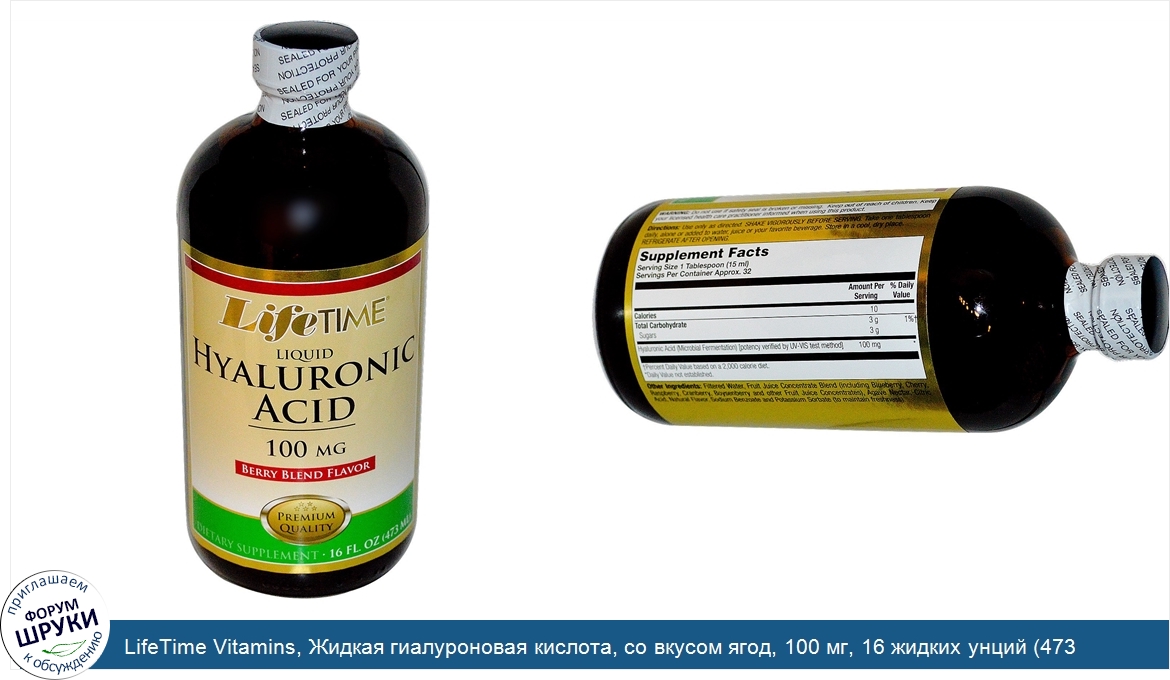 Друзья, если у вас есть отзыв/дополнение/комментарий/вопрос относительно LifeTime Vitamins, Жидкая гиалуроновая кислота, со вкусом ягод, 100 мг, 16 жидких унций (473 мл) - напишите его ответом в эту тему (это будет полезно всему сообществу в целом и вам в отдельности).