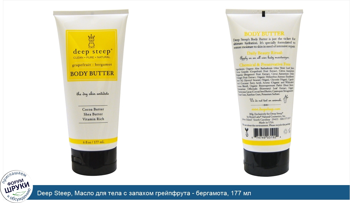 Друзья, если у вас есть отзыв/дополнение/комментарий/вопрос относительно Deep Steep, Масло для тела с запахом грейпфрута - бергамота, 177 мл - напишите его ответом в эту тему (это будет полезно всему сообществу в целом и вам в отдельности).
