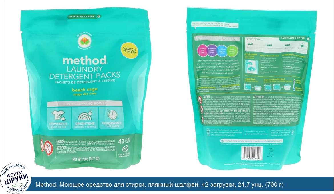 Друзья, если у вас есть отзыв/дополнение/комментарий/вопрос относительно Method, Моющее средство для стирки, пляжный шалфей, 42 загрузки, 24,7 унц. (700 г) - напишите его ответом в эту тему (это будет полезно всему сообществу в целом и вам в отдельности).