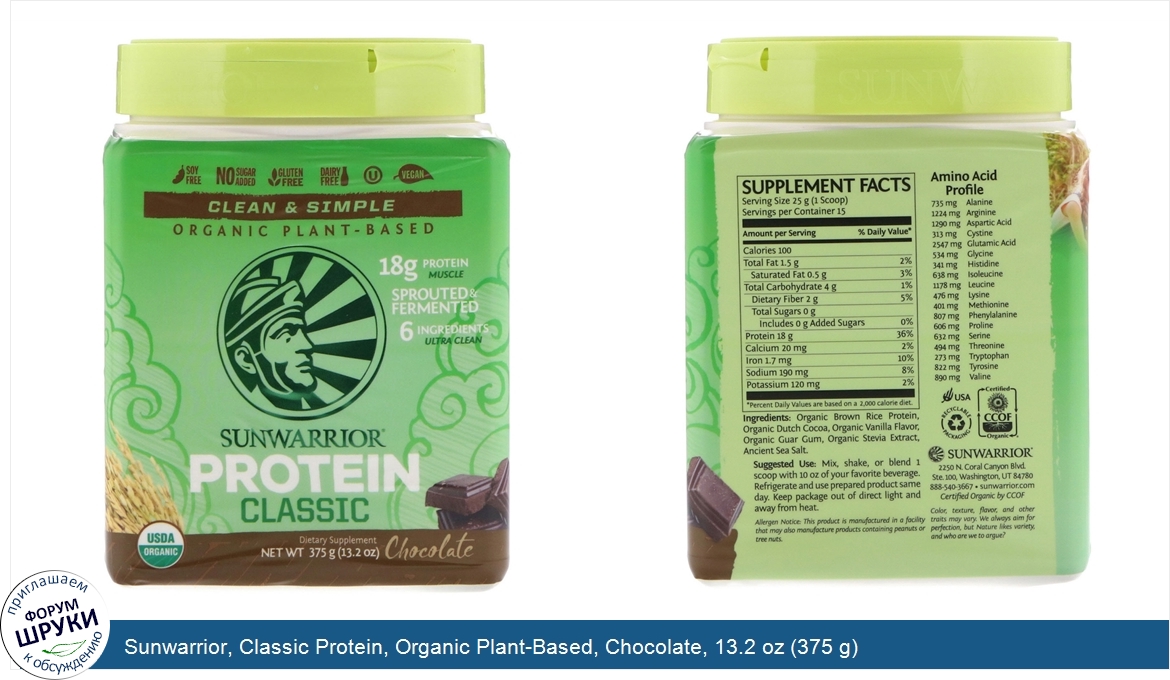 Друзья, если у вас есть отзыв/дополнение/комментарий/вопрос относительно Sunwarrior, Classic Protein, Organic Plant-Based, Chocolate, 13.2 oz (375 g) - напишите его ответом в эту тему (это будет полезно всему сообществу в целом и вам в отдельности).