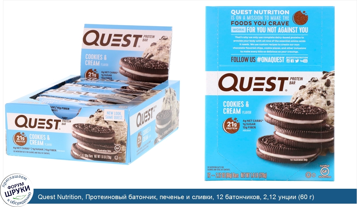 Друзья, если у вас есть отзыв/дополнение/комментарий/вопрос относительно Quest Nutrition, Протеиновый батончик, печенье и сливки, 12 батончиков, 2,12 унции (60 г) каждый - напишите его ответом в эту тему (это будет полезно всему сообществу в целом и вам в отдельности).