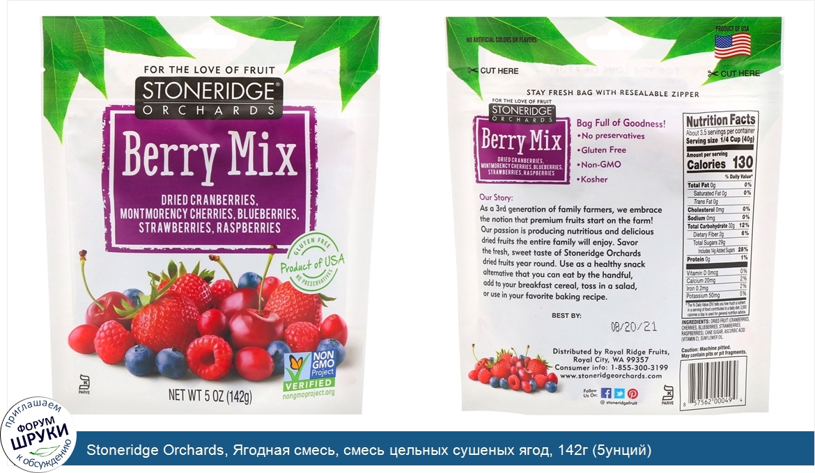 Друзья, если у вас есть отзыв/дополнение/комментарий/вопрос относительно Stoneridge Orchards, Ягодная смесь, смесь цельных сушеных ягод, 142г (5унций) - напишите его ответом в эту тему (это будет полезно всему сообществу в целом и вам в отдельности).
