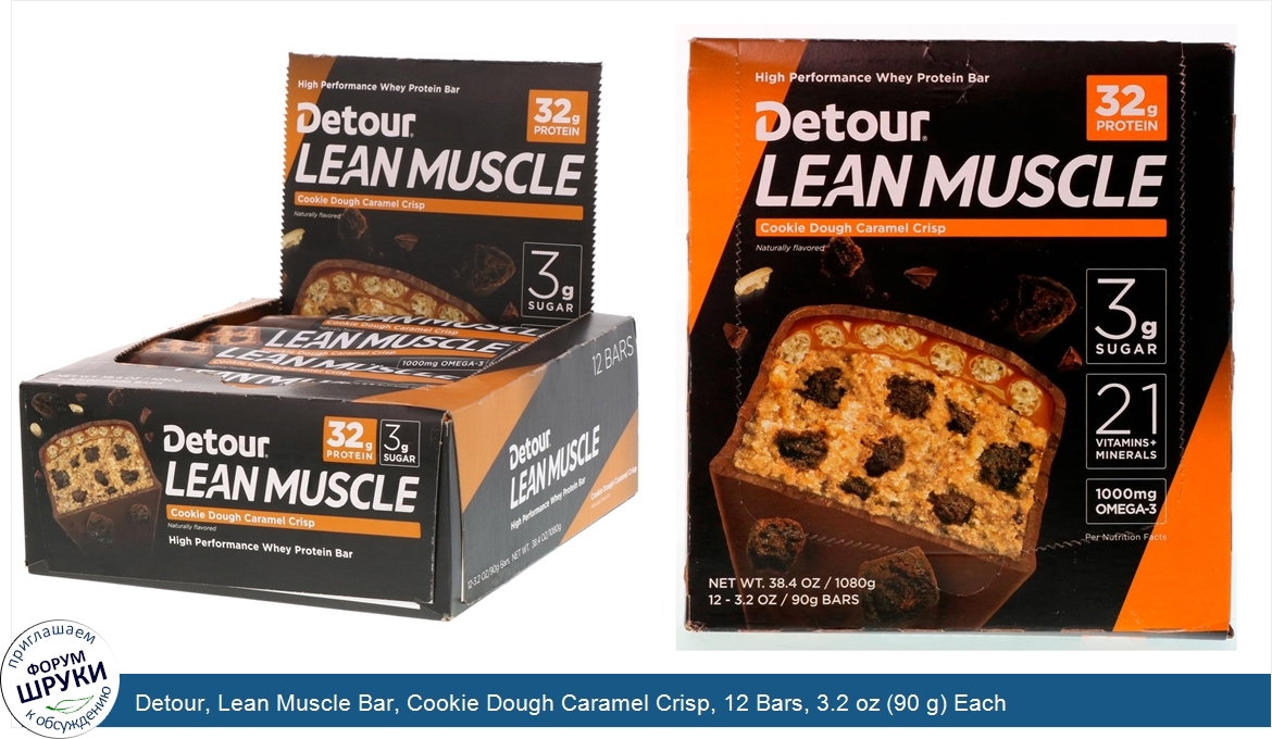 Detour, Lean Muscle Bar, Cookie Dough Caramel Crisp, 12 Bars, 3.2 oz (90 g) Each