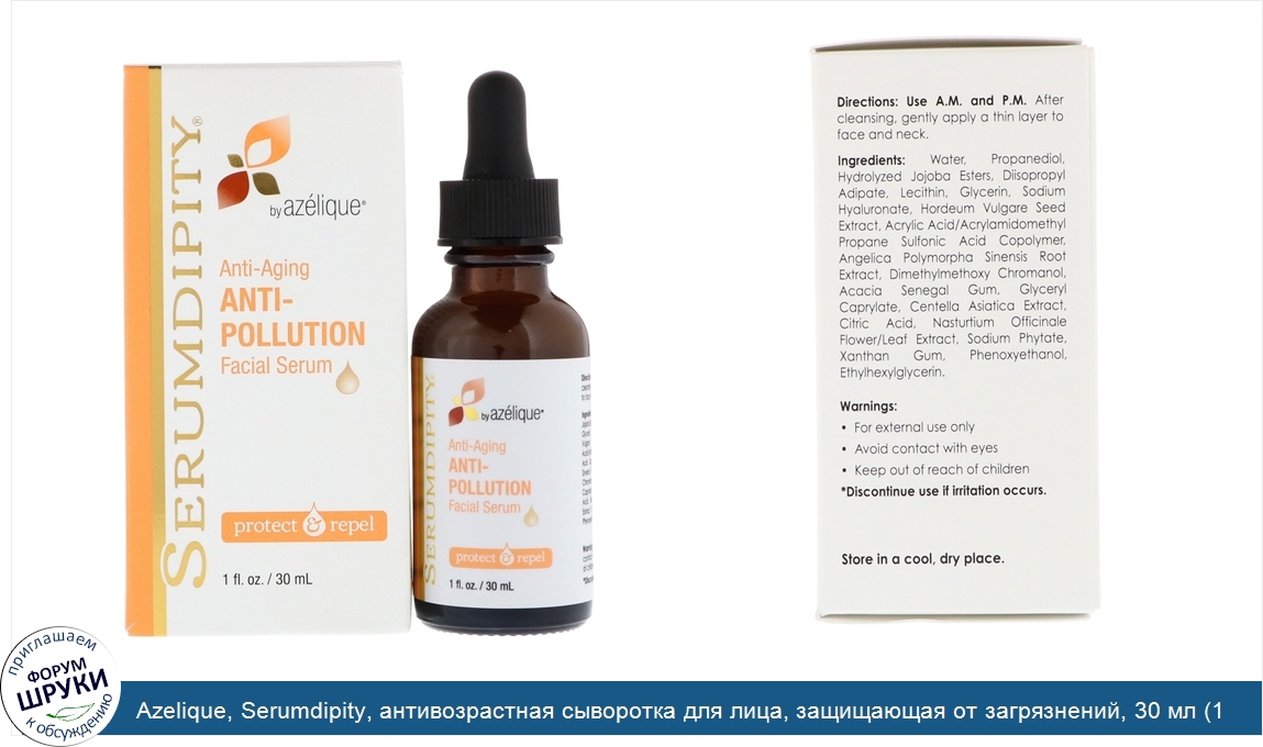 Друзья, если у вас есть отзыв/дополнение/комментарий/вопрос относительно Azelique, Serumdipity, антивозрастная сыворотка для лица, защищающая от загрязнений, 30 мл (1 жидк.унция) - напишите его ответом в эту тему (это будет полезно всему сообществу в целом и вам в отдельности).