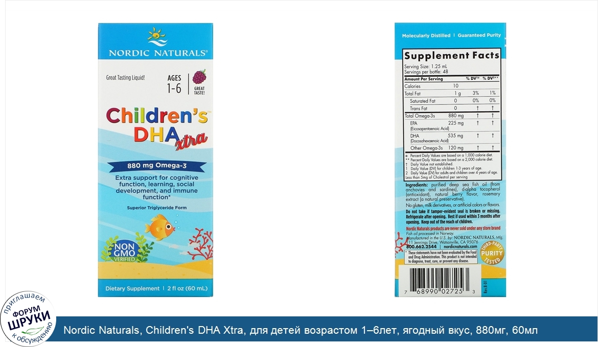 Друзья, если у вас есть отзыв/дополнение/комментарий/вопрос относительно Nordic Naturals, Children's DHA Xtra, для детей возрастом 1–6лет, ягодный вкус, 880мг, 60мл (2жидк.унции) - напишите его ответом в эту тему (это будет полезно всему сообществу в целом и вам в отдельности).
