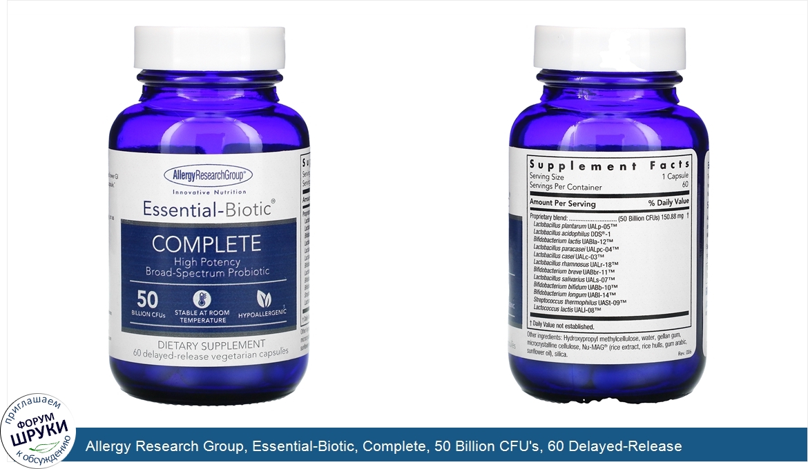 Друзья, если у вас есть отзыв/дополнение/комментарий/вопрос относительно Allergy Research Group, Essential-Biotic, Complete, 50 Billion CFU's, 60 Delayed-Release Vegetarian Capsules - напишите его ответом в эту тему (это будет полезно всему сообществу в целом и вам в отдельности).