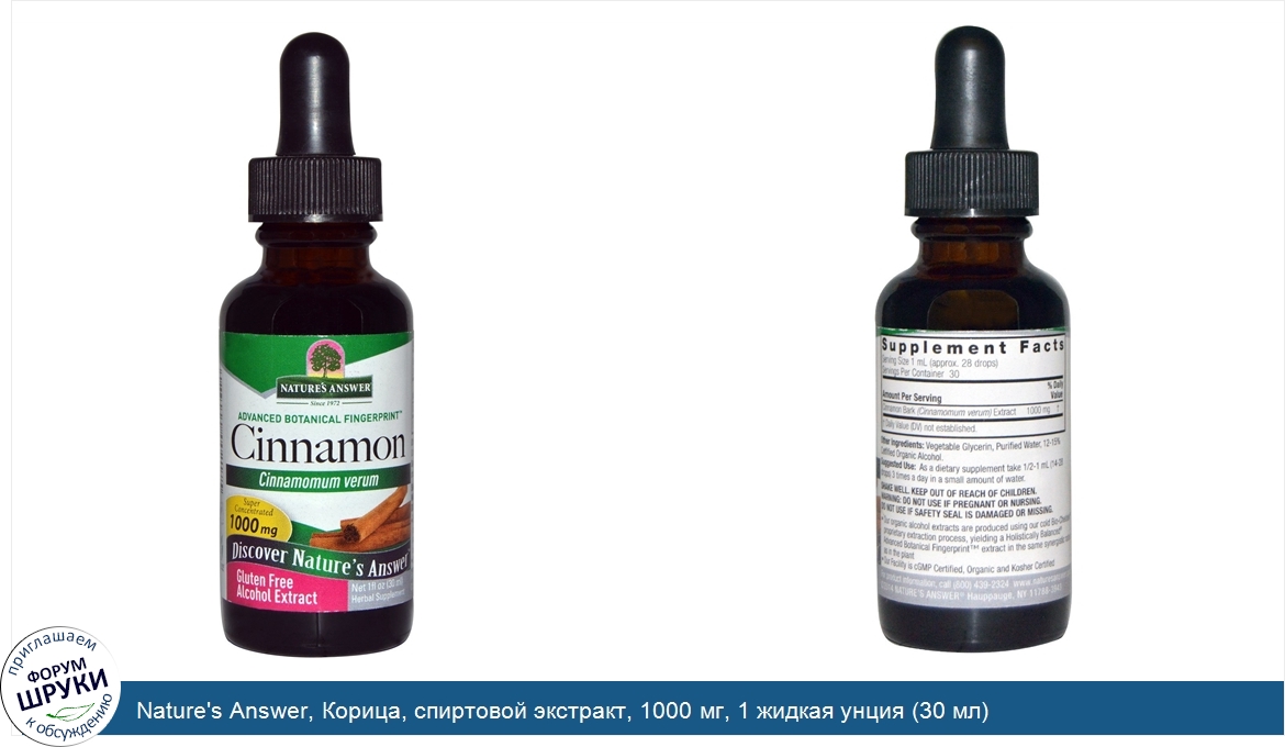 Друзья, если у вас есть отзыв/дополнение/комментарий/вопрос относительно Nature's Answer, Корица, спиртовой экстракт, 1000 мг, 1 жидкая унция (30 мл) - напишите его ответом в эту тему (это будет полезно всему сообществу в целом и вам в отдельности).