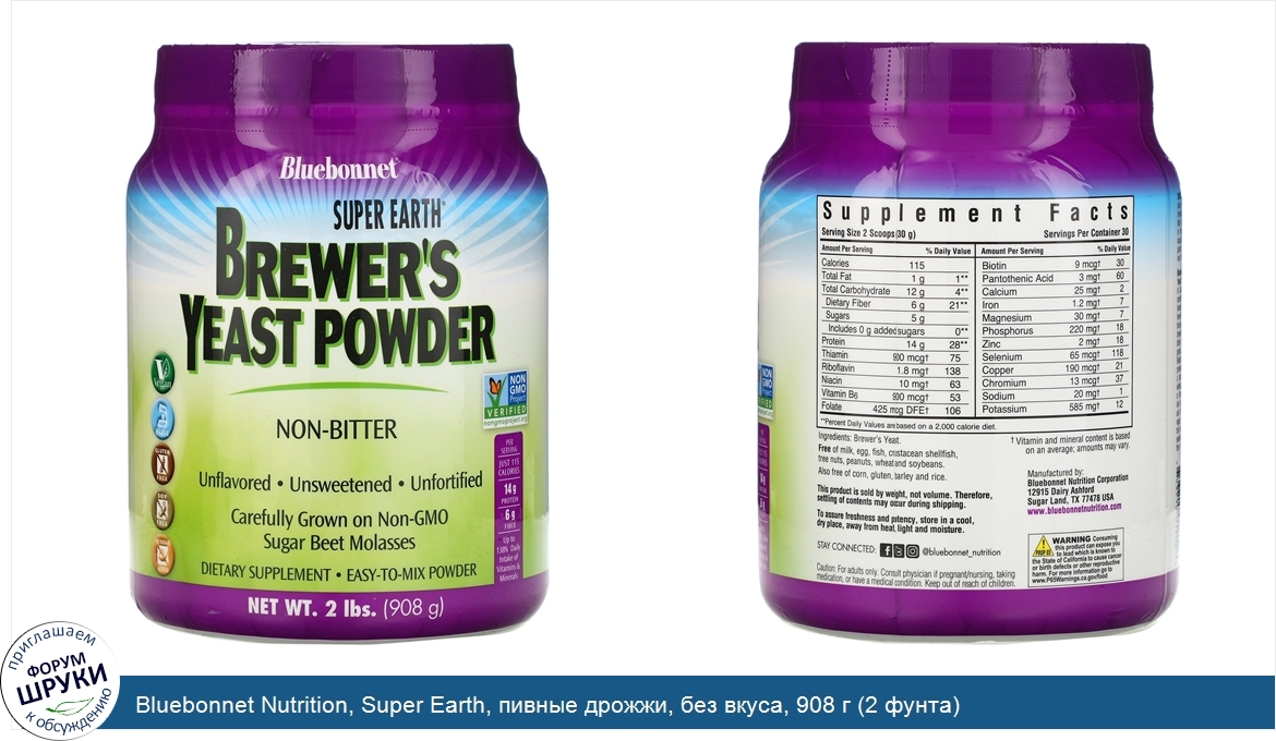 Друзья, если у вас есть отзыв/дополнение/комментарий/вопрос относительно Bluebonnet Nutrition, Super Earth, пивные дрожжи, без вкуса, 908 г (2 фунта) - напишите его ответом в эту тему (это будет полезно всему сообществу в целом и вам в отдельности).