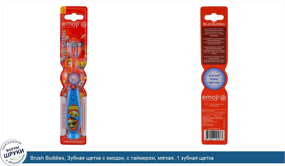 Brush Buddies, Зубная щетка с эмодзи, с таймером, мягкая, 1 зубная щетка