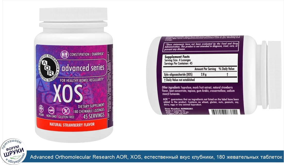 Advanced Orthomolecular Research AOR, XOS, естественный вкус клубники, 180 жевательных таблеток