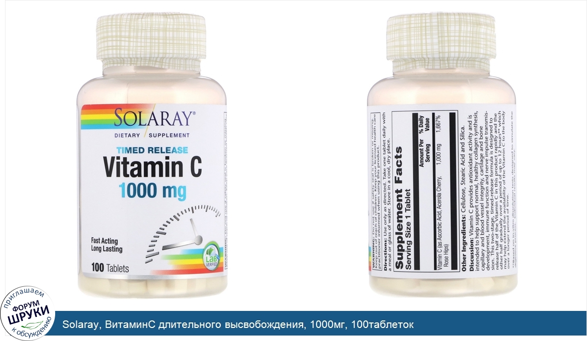ru Solaray, ВитаминC длительного высвобождения, 1000мг, 100таблеток