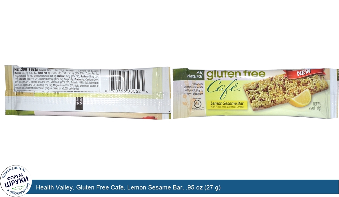 Друзья, если у вас есть отзыв/дополнение/комментарий/вопрос относительно Health Valley, Gluten Free Cafe, Lemon Sesame Bar, .95 oz (27 g) - напишите его ответом в эту тему (это будет полезно всему сообществу в целом и вам в отдельности).