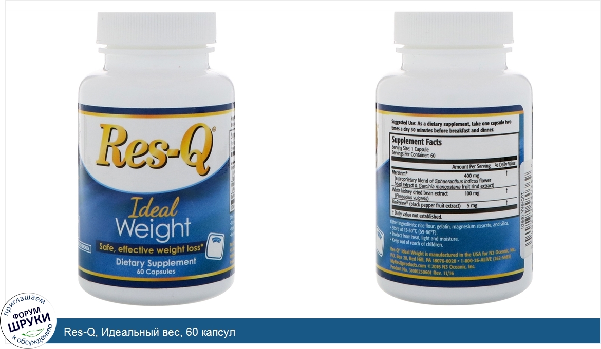 [DESCRIPT]Safe, Effective Weight Loss. Dietary Supplement. Meratrim. Res-Q Ideal Weight is a safe, all-natural formulation that combines Meratrim, BioPerine and white kidney dried bean extract. Studies show results can be expected in two weeks.[/DESCRIPT]... (описание дополняется)