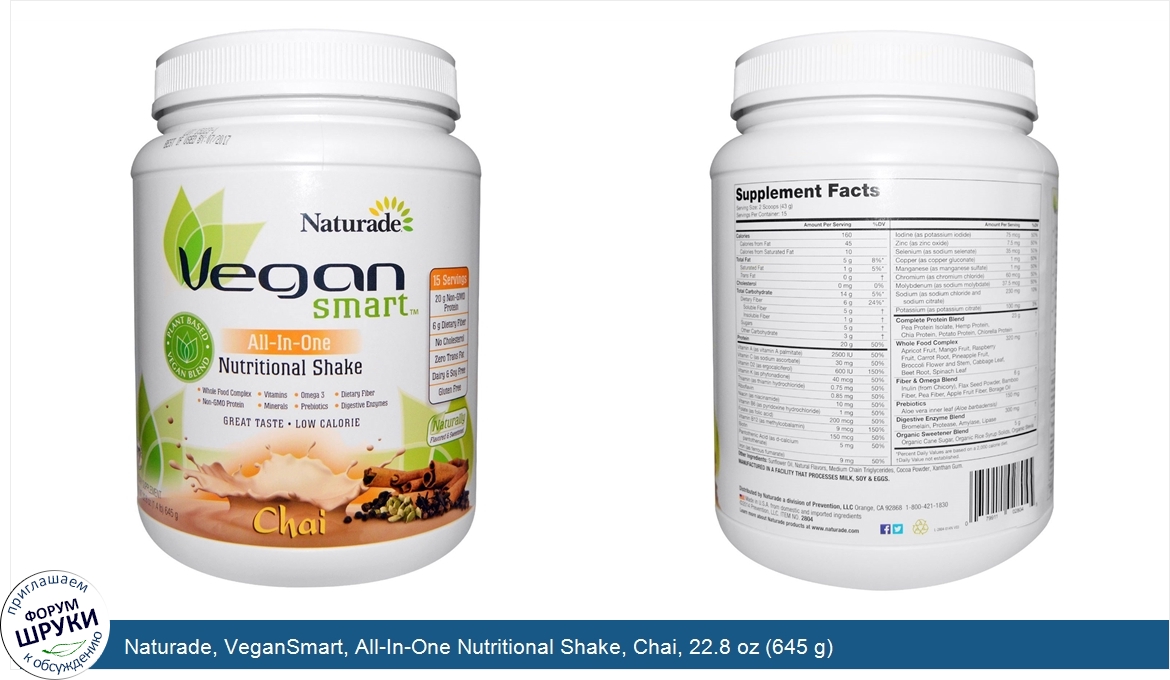Друзья, если у вас есть отзыв/дополнение/комментарий/вопрос относительно Naturade, VeganSmart, All-In-One Nutritional Shake, Chai, 22.8 oz (645 g) - напишите его ответом в эту тему (это будет полезно всему сообществу в целом и вам в отдельности).