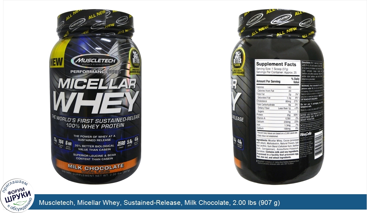 Друзья, если у вас есть отзыв/дополнение/комментарий/вопрос относительно Muscletech, Micellar Whey, Sustained-Release, Milk Chocolate, 2.00 lbs (907 g) - напишите его ответом в эту тему (это будет полезно всему сообществу в целом и вам в отдельности).