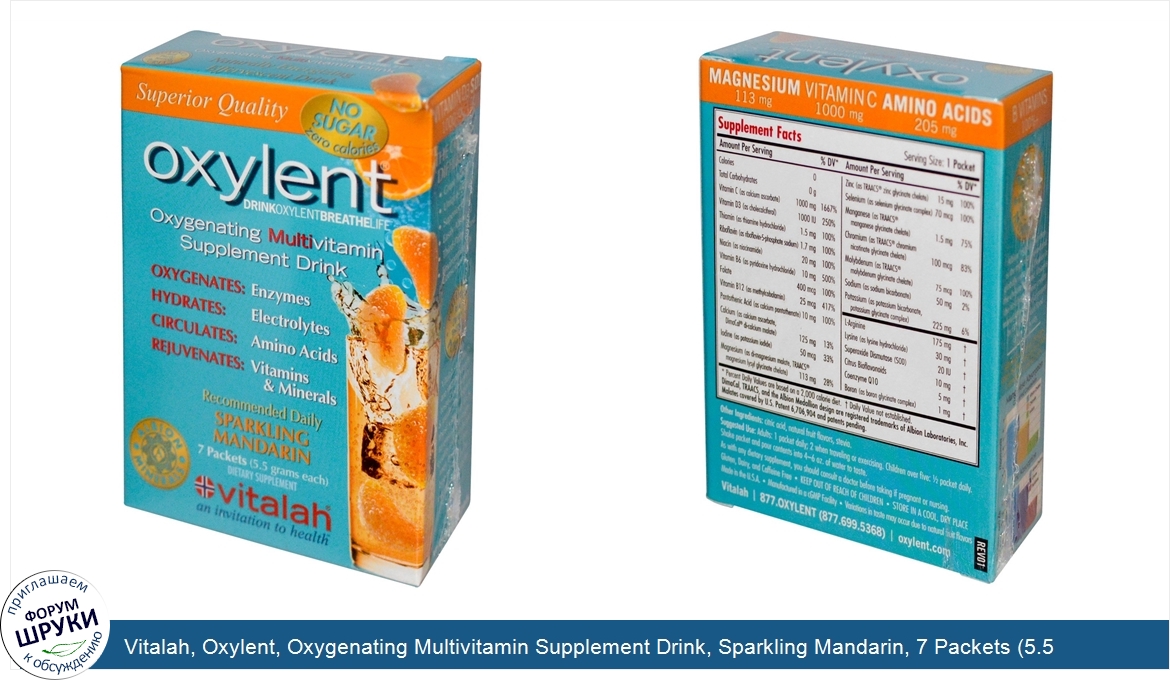Друзья, если у вас есть отзыв/дополнение/комментарий/вопрос относительно Vitalah, Oxylent, Oxygenating Multivitamin Supplement Drink, Sparkling Mandarin, 7 Packets (5.5 g) Each - напишите его ответом в эту тему (это будет полезно всему сообществу в целом и вам в отдельности).