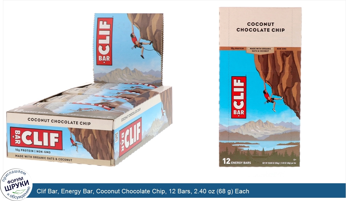 Друзья, если у вас есть отзыв/дополнение/комментарий/вопрос относительно Clif Bar, Energy Bar, Coconut Chocolate Chip, 12 Bars, 2.40 oz (68 g) Each - напишите его ответом в эту тему (это будет полезно всему сообществу в целом и вам в отдельности).