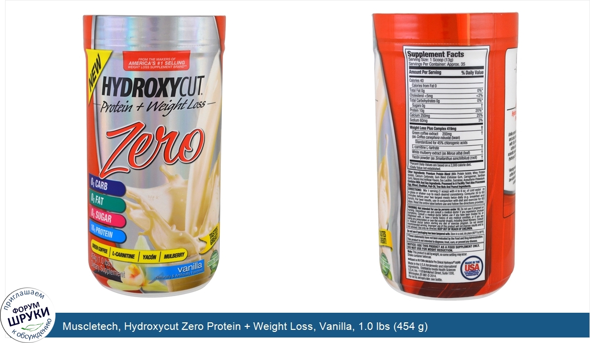 Muscletech, Hydroxycut Zero Protein + Weight Loss, Vanilla, 1.0 lbs (454 g)