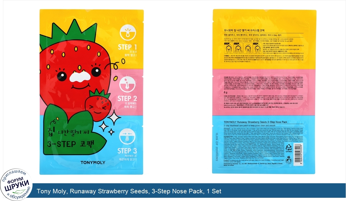 Друзья, если у вас есть отзыв/дополнение/комментарий/вопрос относительно Tony Moly, Runaway Strawberry Seeds, 3-Step Nose Pack, 1 Set - напишите его ответом в эту тему (это будет полезно всему сообществу в целом и вам в отдельности).