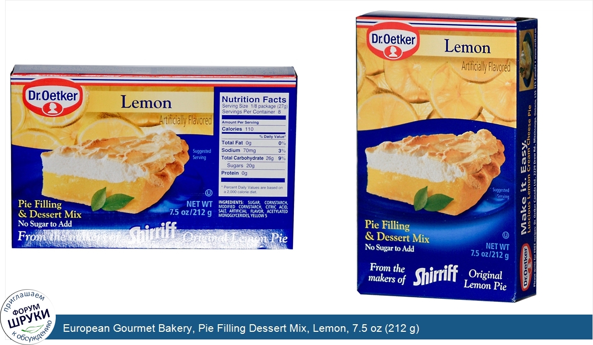 Друзья, если у вас есть отзыв/дополнение/комментарий/вопрос относительно European Gourmet Bakery, Pie Filling Dessert Mix, Lemon, 7.5 oz (212 g) - напишите его ответом в эту тему (это будет полезно всему сообществу в целом и вам в отдельности).