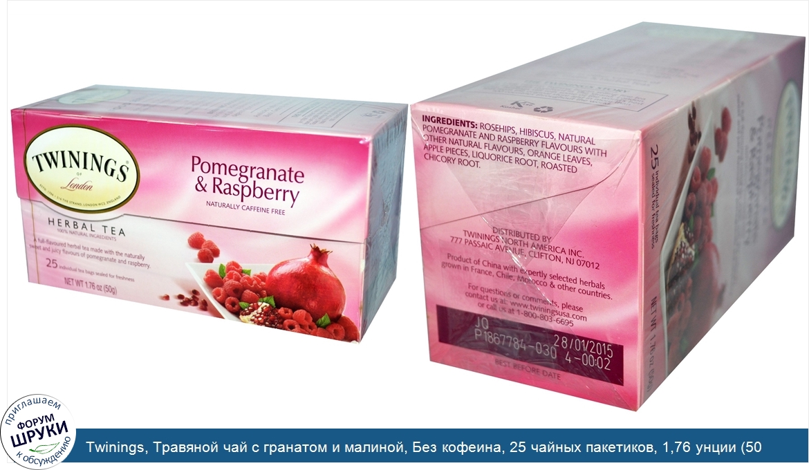 Друзья, если у вас есть отзыв/дополнение/комментарий/вопрос относительно Twinings, Травяной чай с гранатом и малиной, Без кофеина, 25 чайных пакетиков, 1,76 унции (50 г) - напишите его ответом в эту тему (это будет полезно всему сообществу в целом и вам в отдельности).