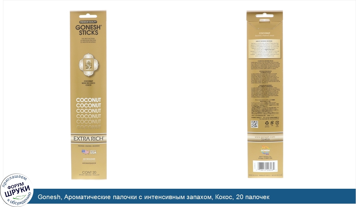 [DESCRIPT]Premium Quality. The Best Incense. Air Freshener. Luscious, Tropical, Sweet. About Gonesh Incense. Genieco continually strives to elevate the level of fragrance delivery by working with creative and skilled perfumers, by using the highest quality raw materials, and by our exclusive use of HighCharcoal. Genieco's Incense has the highest charcoal content of any brand currently on the market - it delivers the purest, cleanest burn, and crystal clear fragrances.[/DESCRIPT]... (описание дополняется)