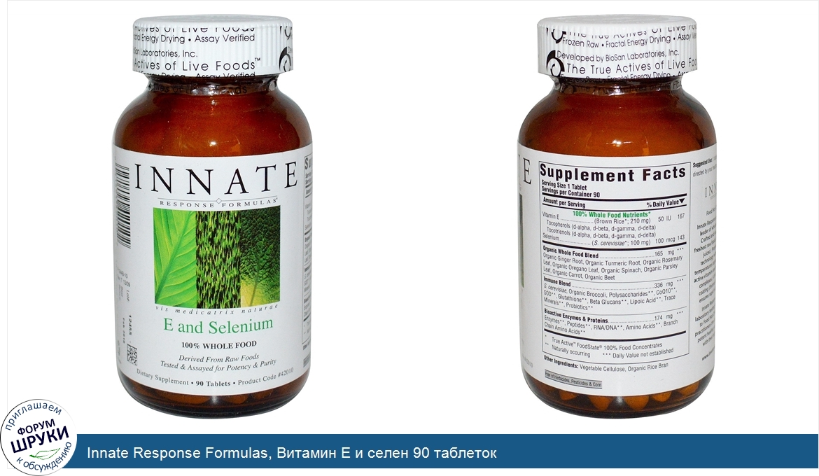 Innate Response Formulas, Витамин Е и селен 90 таблеток