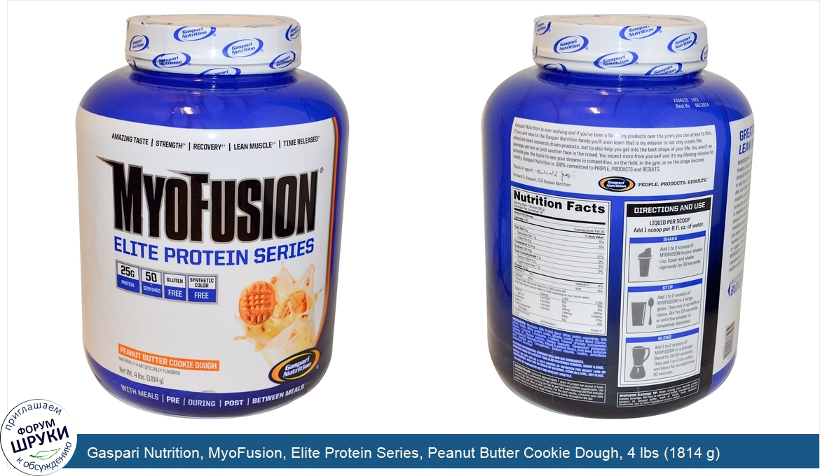 Gaspari Nutrition, MyoFusion, Elite Protein Series, Peanut Butter Cookie Dough, 4 lbs (1814 g)