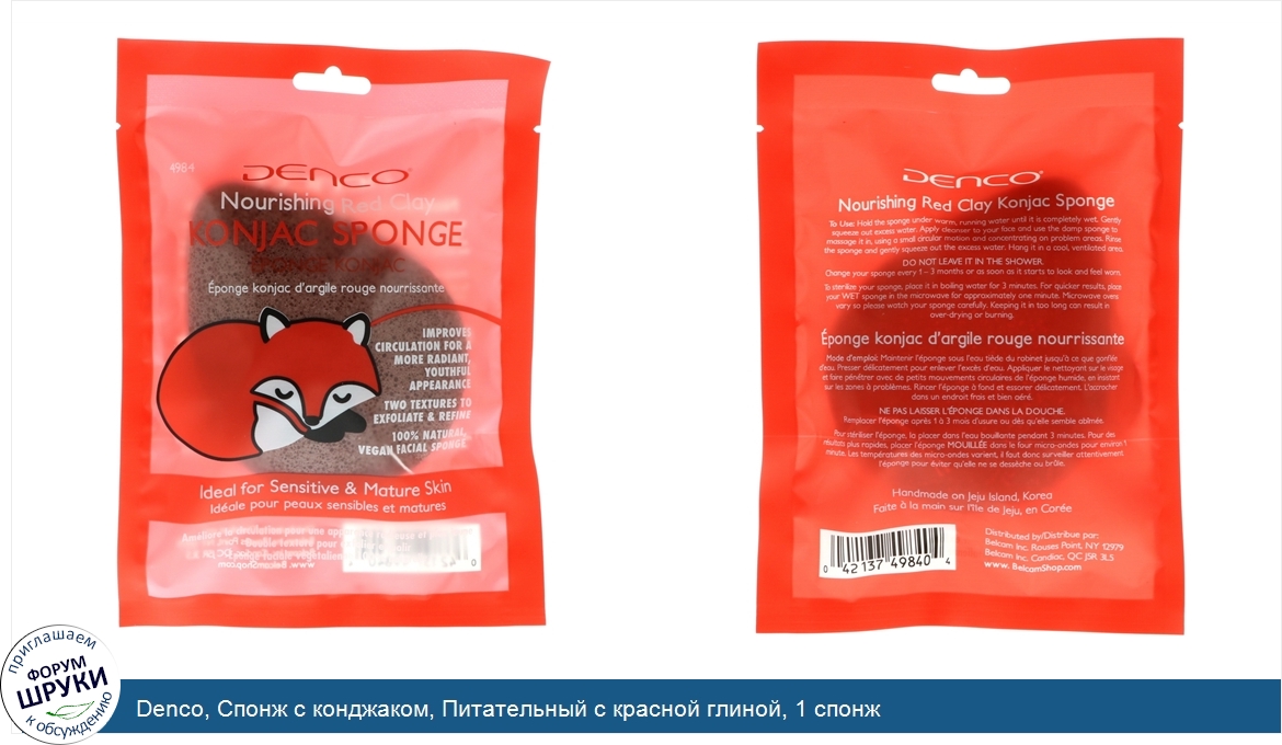 Denco, Спонж с конджаком, Питательный с красной глиной, 1 спонж