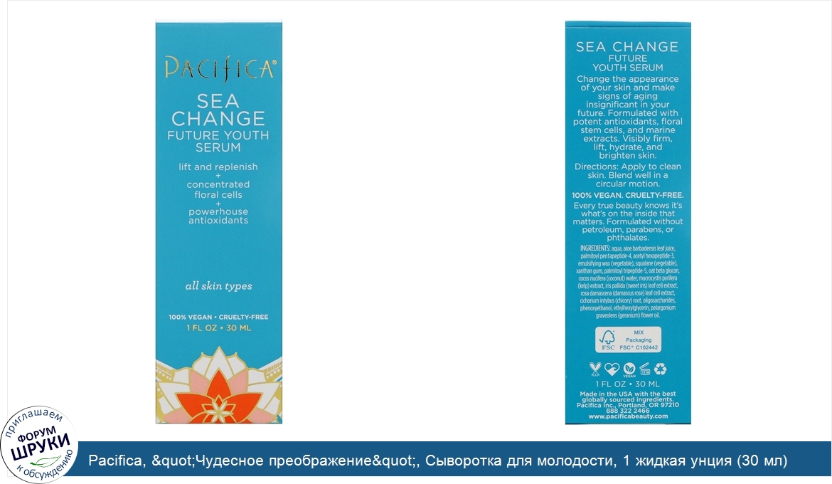 ru Pacifica, "Чудесное преображение", Сыворотка для молодости, 1 жидкая унция (30 мл)