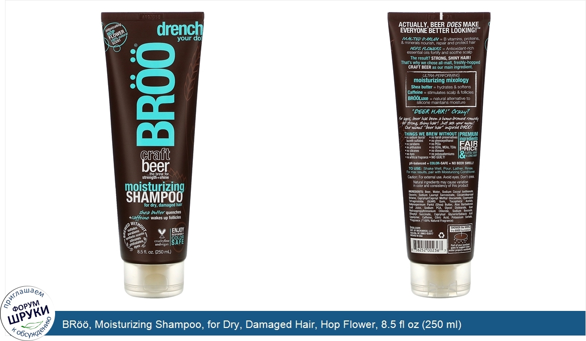 [DESCRIPT]Intoxicating Hop Flower 100% Natural Scent. Drench Your Do! Craft Beer.The Brew For Strength + Shine. Shea Butter Quenches + Caffeine Wakes Up Follicles. Cruelty Free and Vegan. Enjoy Responsibly! Color Safe. Brewed Without:. Sulfates. Parabens. Synthetic Scents. Silicones. Phthalates. Dyes. Actually, Beer does make everyone better looking!™. Malted Barley = B vitamins, proteins, minerals nourish, repair and protect hair. Hops Flowers = Antioxidant-rich essential oils fortify and soothe scalp. The result? Strong, shiny hair! That's why we chose all-malt, freshly-hopped Craft Beer as our main ingredient. Ultra-Performing Moisturizing Mixology. Shea butter = hydrates softness. Caffeine = stimulates scalp follicles. Brööluxe = natural alternative to silicone maintains moisture. "Beer Hair!" Crazy? For ages, beer has been a home-brewed remedy for strong, shiny hair! Just ask your mom! Our moms "beer hair" inspired Bröö! Premium ingredients. Fair price a little goes a long way! pH-balanced + color-safe + no beer smell![/DESCRIPT]... (описание дополняется)