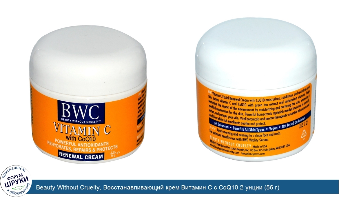 Друзья, если у вас есть отзыв/дополнение/комментарий/вопрос относительно Beauty Without Cruelty, Восстанавливающий крем Витамин С с CoQ10 2 унции (56 г) - напишите его ответом в эту тему (это будет полезно всему сообществу в целом и вам в отдельности).
