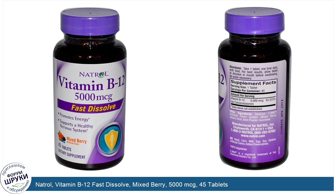 Друзья, если у вас есть отзыв/дополнение/комментарий/вопрос относительно Natrol, Vitamin B-12 Fast Dissolve, Mixed Berry, 5000 mcg, 45 Tablets - напишите его ответом в эту тему (это будет полезно всему сообществу в целом и вам в отдельности).
