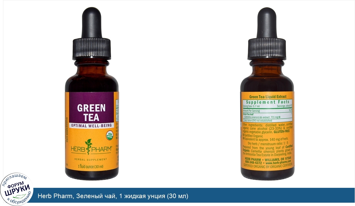 Друзья, если у вас есть отзыв/дополнение/комментарий/вопрос относительно Herb Pharm, Зеленый чай, 1 жидкая унция (30 мл) - напишите его ответом в эту тему (это будет полезно всему сообществу в целом и вам в отдельности).