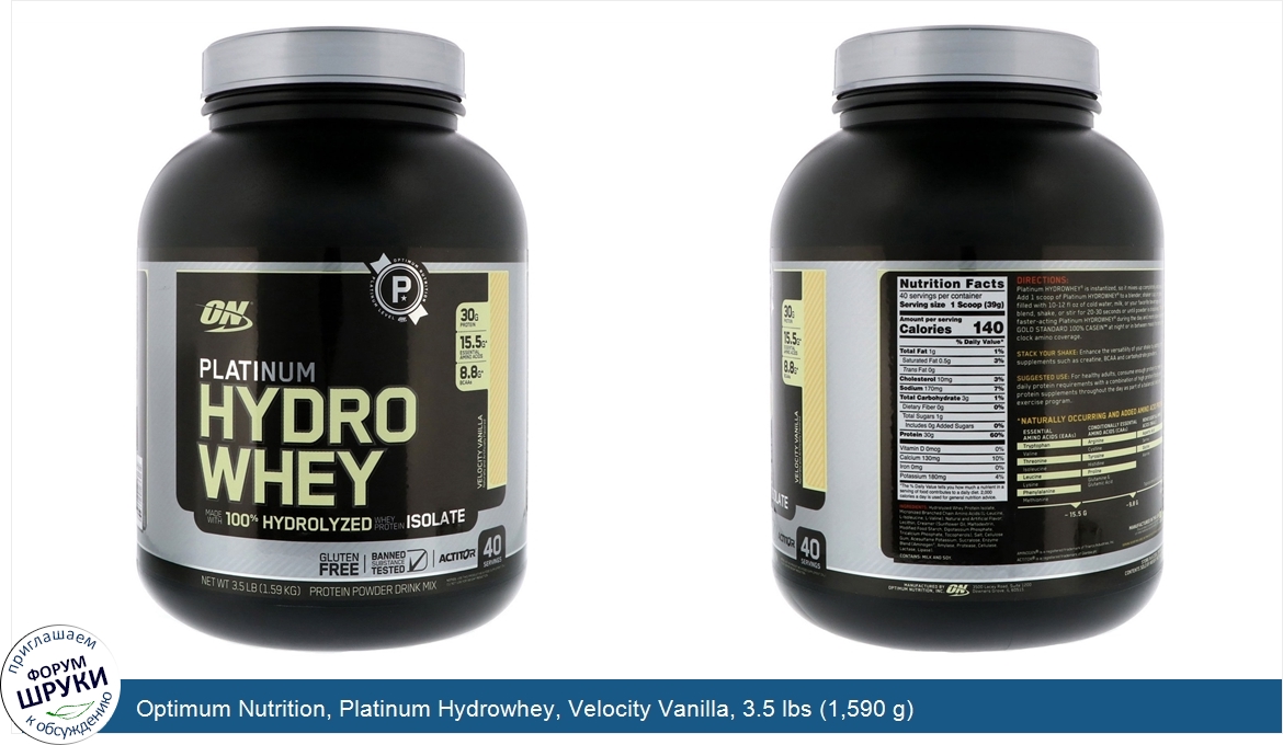 Друзья, если у вас есть отзыв/дополнение/комментарий/вопрос относительно Optimum Nutrition, Platinum Hydrowhey, Velocity Vanilla, 3.5 lbs (1,590 g) - напишите его ответом в эту тему (это будет полезно всему сообществу в целом и вам в отдельности).