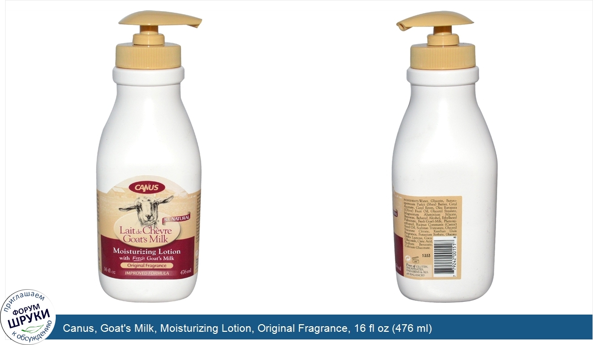 Друзья, если у вас есть отзыв/дополнение/комментарий/вопрос относительно Canus, Goat's Milk, Moisturizing Lotion, Original Fragrance, 16 fl oz (476 ml) - напишите его ответом в эту тему (это будет полезно всему сообществу в целом и вам в отдельности).