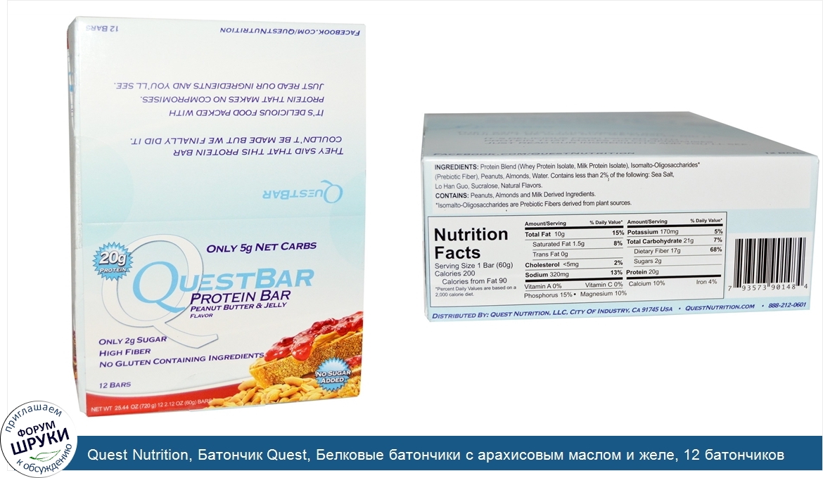 Друзья, если у вас есть отзыв/дополнение/комментарий/вопрос относительно Quest Nutrition, Батончик Quest, Белковые батончики с арахисовым маслом и желе, 12 батончиков по 2,12 унции (60 г) каждый - напишите его ответом в эту тему (это будет полезно всему сообществу в целом и вам в отдельности).