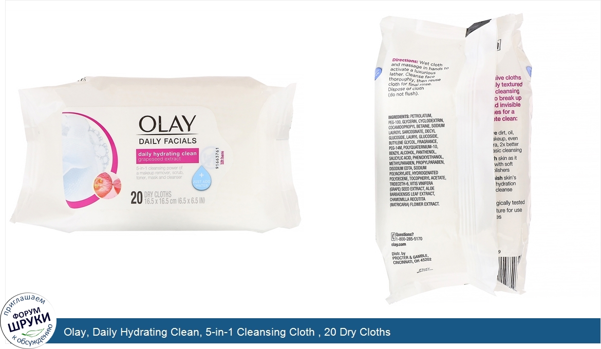 Друзья, если у вас есть отзыв/дополнение/комментарий/вопрос относительно Olay, Daily Hydrating Clean, 5-in-1 Cleansing Cloth , 20 Dry Cloths - напишите его ответом в эту тему (это будет полезно всему сообществу в целом и вам в отдельности).