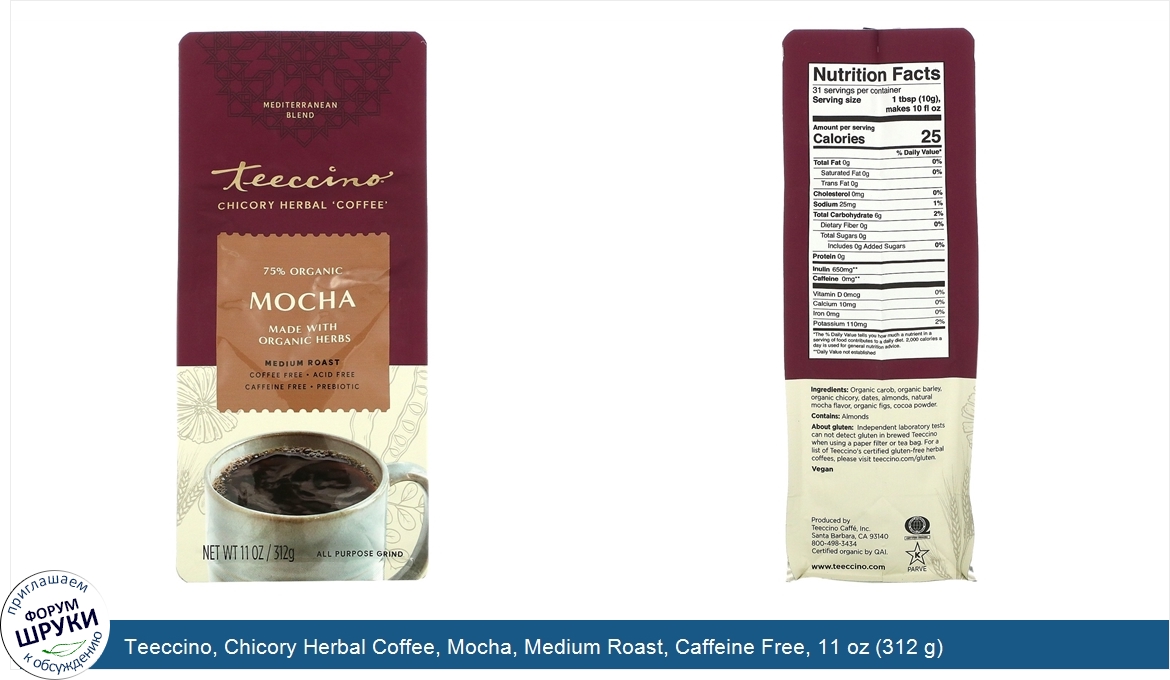 Друзья, если у вас есть отзыв/дополнение/комментарий/вопрос относительно Teeccino, Chicory Herbal Coffee, Mocha, Medium Roast, Caffeine Free, 11 oz (312 g) - напишите его ответом в эту тему (это будет полезно всему сообществу в целом и вам в отдельности).