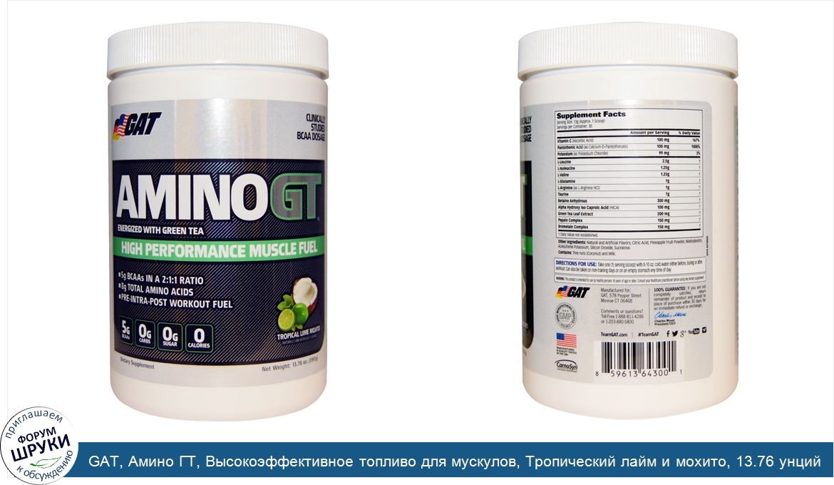 GAT, Амино ГТ, Высокоэффективное топливо для мускулов, Тропический лайм и мохито, 13.76 унций (390 г)