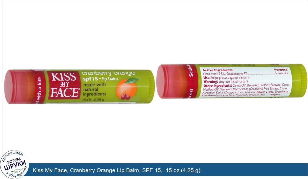 ru Kiss My Face, Cranberry Orange Lip Balm, SPF 15, .15 oz (4.25 g)