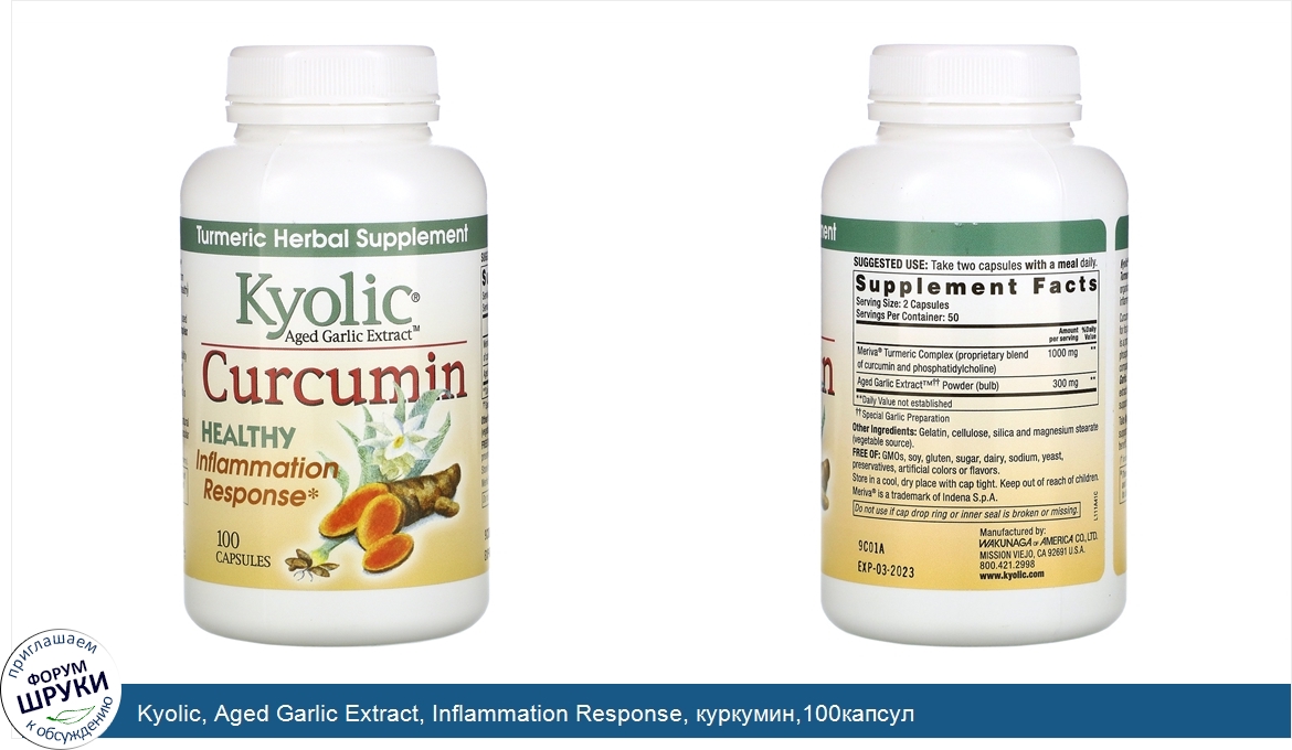 Друзья, если у вас есть отзыв/дополнение/комментарий/вопрос относительно Kyolic, Aged Garlic Extract, Inflammation Response, куркумин,100капсул - напишите его ответом в эту тему (это будет полезно всему сообществу в целом и вам в отдельности).