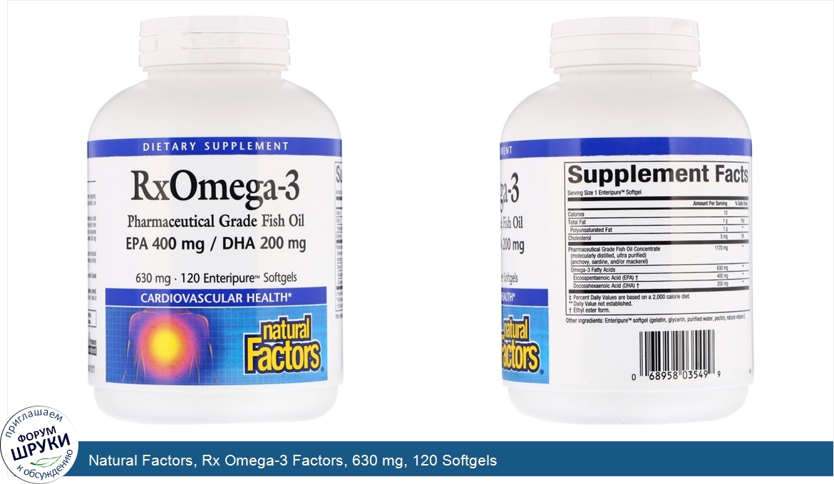 Natural Factors, Rx Omega-3 Factors, 630 mg, 120 Softgels