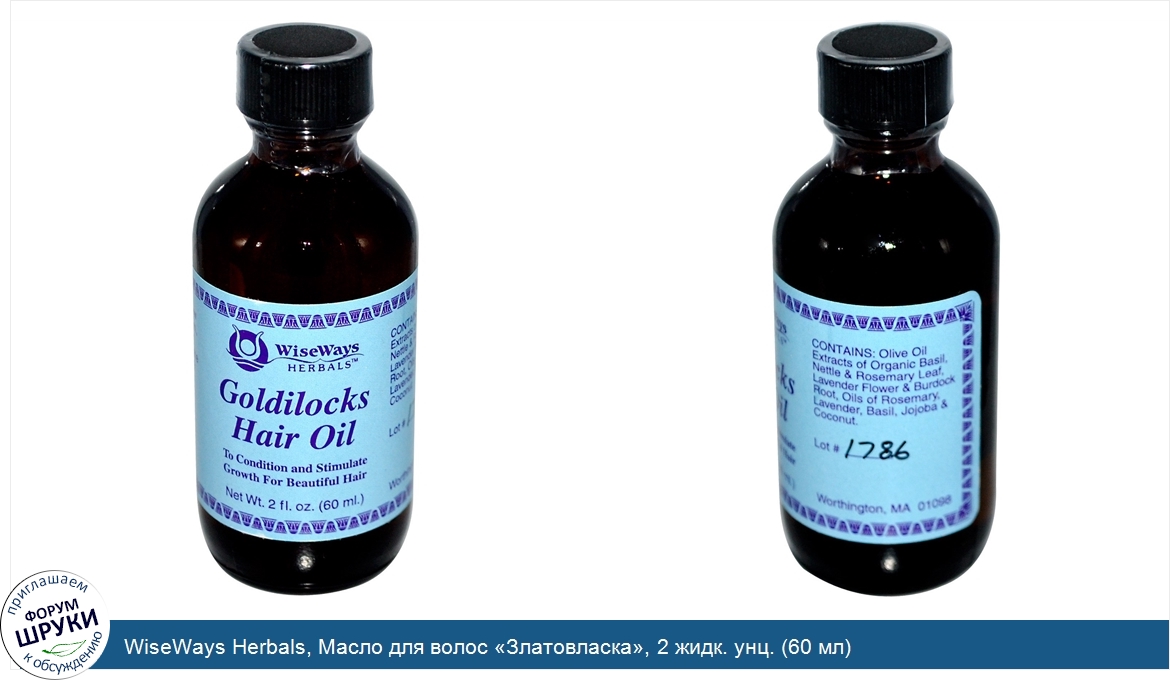 Друзья, если у вас есть отзыв/дополнение/комментарий/вопрос относительно WiseWays Herbals, Масло для волос «Златовласка», 2 жидк. унц. (60 мл) - напишите его ответом в эту тему (это будет полезно всему сообществу в целом и вам в отдельности).