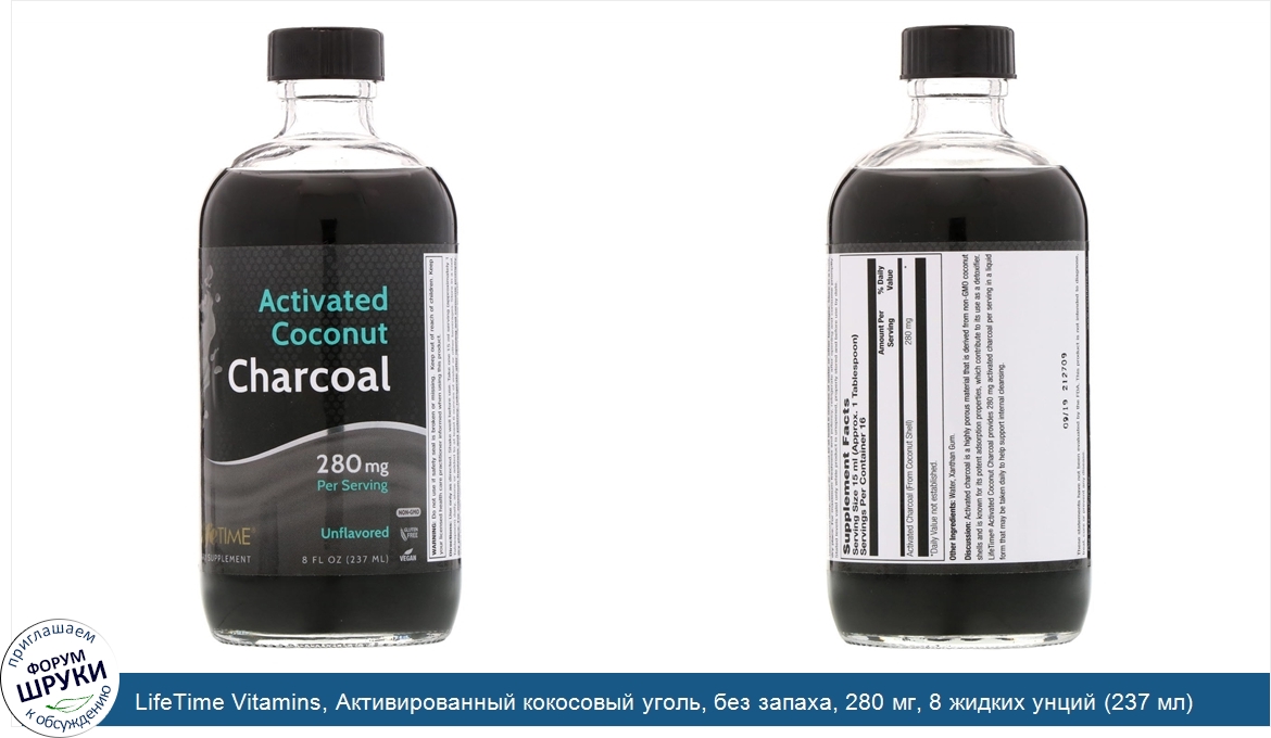 LifeTime Vitamins, Активированный кокосовый уголь, без запаха, 280 мг, 8 жидких унций (237 мл)