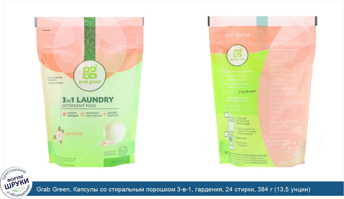 Друзья, если у вас есть отзыв/дополнение/комментарий/вопрос относительно Grab Green, Капсулы со стиральным порошком 3-в-1, гардения, 24 стирки, 384 г (13,5 унции) - напишите его ответом в эту тему (это будет полезно всему сообществу в целом и вам в отдельности).