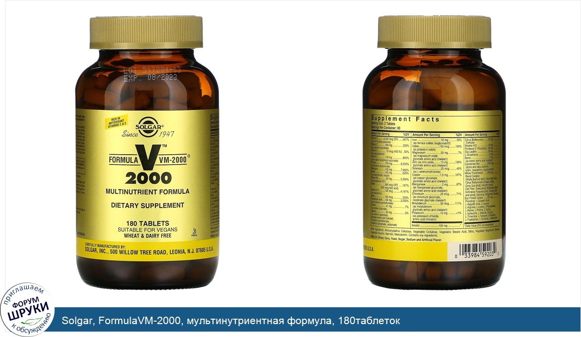 Solgar, FormulaVM-2000, мультинутриентная формула, 180таблеток
