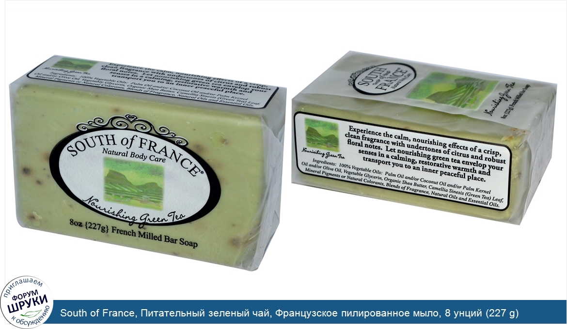 Друзья, если у вас есть отзыв/дополнение/комментарий/вопрос относительно South of France, Питательный зеленый чай, Французское пилированное мыло, 8 унций (227 g) - напишите его ответом в эту тему (это будет полезно всему сообществу в целом и вам в отдельности).